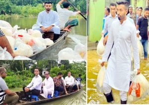 বন্যা দুর্গতদের জন্য খাদ্য সামগ্রী নিয়ে আবারও পানিতে নামলেন ফারাজ করিম চৌধুরী