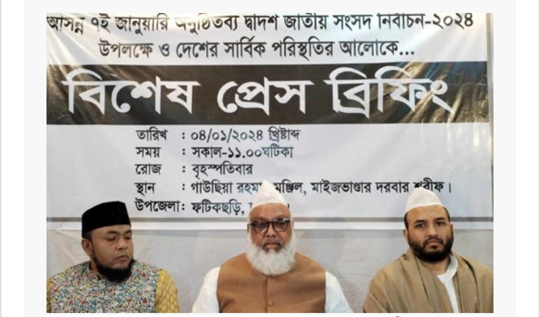 আসন্ন দ্বাদশ জাতীয় সংসদ নির্বাচনে ফটিকছড়ি আসন থেকে সরে দাঁড়ালেন তরিকত ফেডারেশনের চেয়ারম্যান ও ফুলের মালা প্রতীকের প্রার্থী সৈয়দ নজিবুল বশর মাইজভাণ্ডারি।
