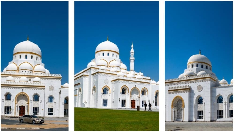 শেখ রশিদ বিন মোহাম্মদ বিন রশিদ আল মাকতুমের নামানুসারে, এই মসজিদগুলি তাদের অত্যাশ্চর্য সাদা বহির্ভাগে সোনালি বিবরণ দিয়ে সজ্জিত। প্রতিটি মসজিদের চারপাশে ১৫ টিরও বেশি ছোট গম্বুজ সহ দুটি সুউচ্চ মিনার এবং একটি বিশাল কেন্দ্রীয় গম্বুজ রয়েছে।