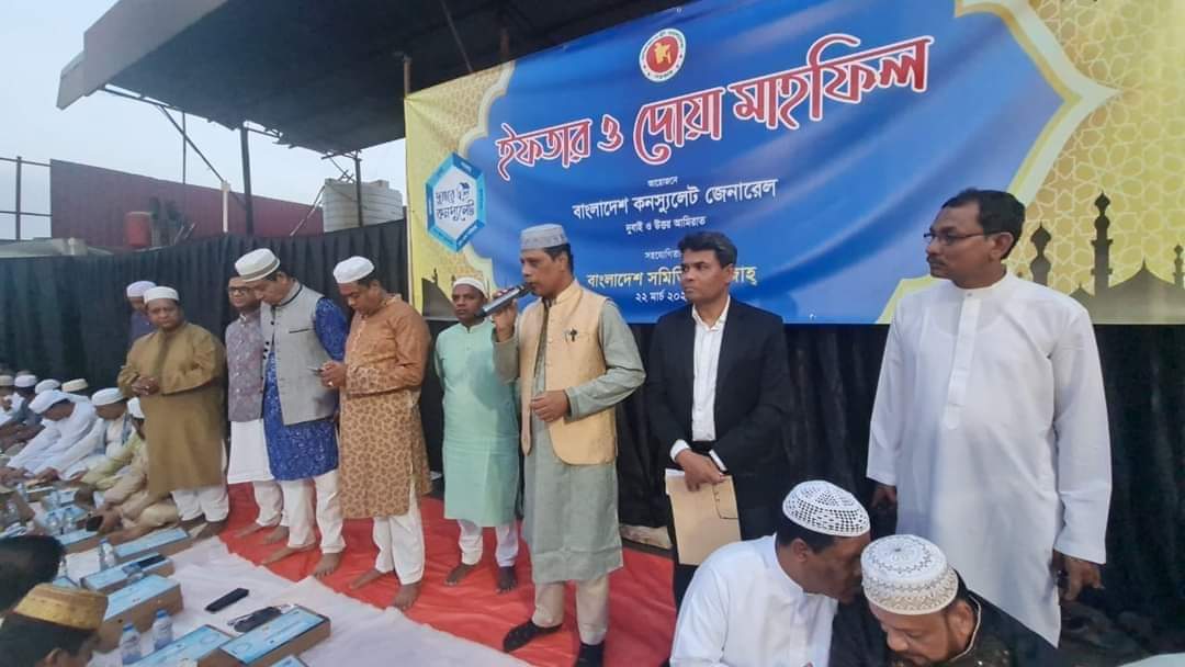 দুয়ারে কনস্যুলেট এই স্লোগানকে সামনে রেখে বাংলাদেশ কনস্যুলেট দুবাই আয়োজনে এবং বাংলাদেশ সমিতি শারজার সহযোগিতায় বাংলাদেশ কমিউনিটির ব্যক্তিবর্গ বিশেষত শারজাহতে কর্মরত শ্রমিকদের সম্মানে ইফতার ও দোয়া মাহফিল অনুষ্ঠিত হয়। সারজা ইন্ডাস্ট্রিয়াল এরিয়া থ্রি আল মাত্তার কারস সার্ভিস সেন্টারে এই ইফতার মাহফিলের আয়োজন করা হয়। আয়োজিত ইফতার মাহফিলে প্রধান অতিথি হিসেবে উপস্থিত ছিলেন দুবাই বাংলাদেশ কনস্যুলেটের কনসাল জেনারেল বিএম জামাল হোসেন। কনসাল জেনারেল বলেন, প্রবাসী বাংলাদেশীদের সম্মানে প্রতিবছরের মত এবারও ইফতারের আয়োজন করতে পেরে তিনি খুবই আনন্দিত। তিনি বলেন, দুয়ারে কনস্যুলেট এর ধারাবাহিকতায় প্রতিটি প্রদেশে এইরকম ইফতারের আয়োজন করা হবে। ইফতার মাহফিলে উপস্থিত ছিলেন কমার্শিয়াল কাউন্সিলর আশীষ কুমার,শ্রম কাউন্সিলর আব্দুস সালাম,প্রেস কাউন্সিলর আরিফুর রহমান, বাংলাদেশ সমিতি শারজার সভাপতি আলহাজ্ব আবুল বাশার, বাংলাদেশ বিজনেস কাউন্সিল দুবাইয়ের সিনিয়র সহ-সভাপতি আইয়ুব আলী বাবুল, ইসমাইল গনি চৌধুরী, শাহাদাত হোসেন, বাংলাদেশ বিজনেস ফোরাম আজমানের সভাপতি কামাল হোসেন সুমন,দুবাই বঙ্গবন্ধু পরিষদের সভাপতি কাজী মোহাম্মদ আলী, মোহাম্মদ সেলিম সিআইপি, হাজী সেলিম সিআইপি প্রমুখ।