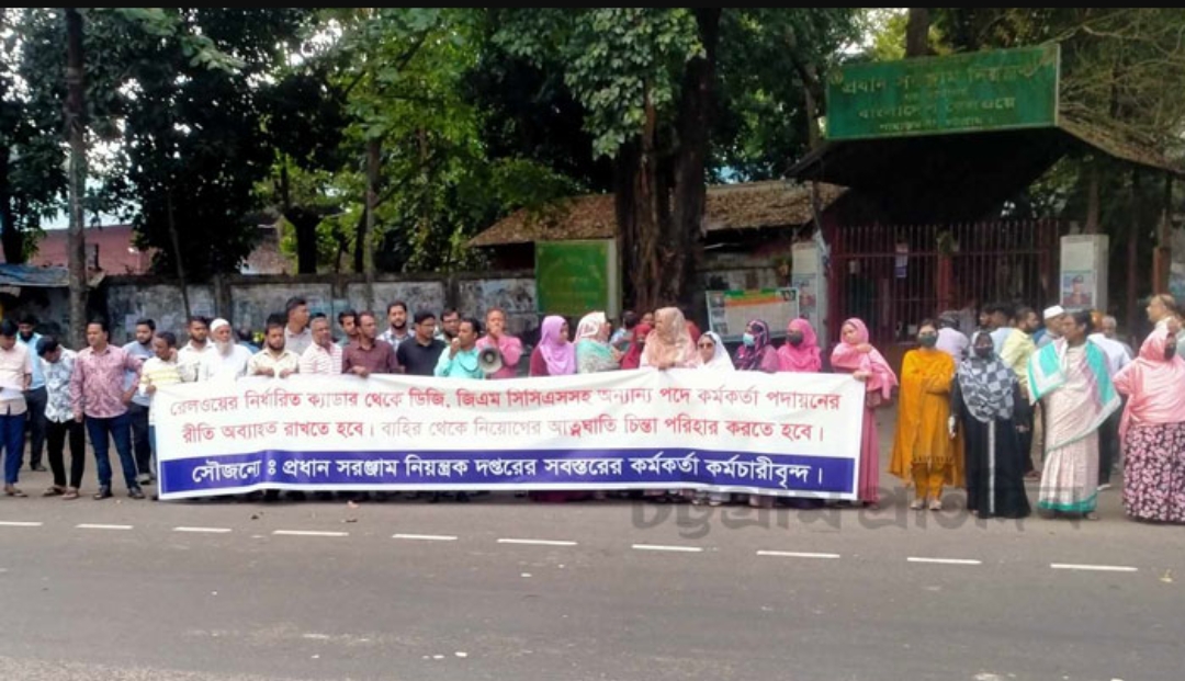 মানববন্ধনে কর্মকর্তা কর্মচারীরা বলেন, রেলের নির্ধারিত ক্যাডার থেকে মহাপরিচালক,