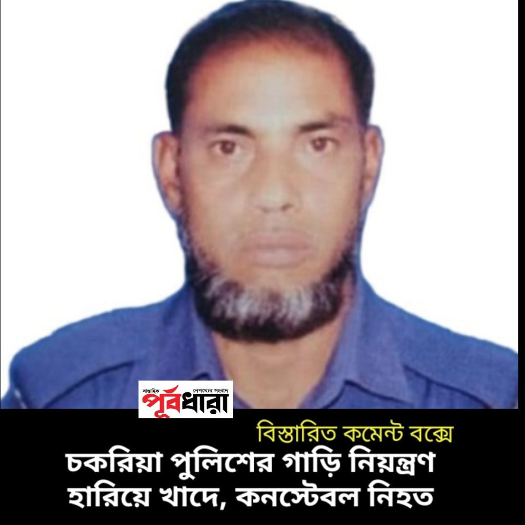 চকরিয়া পুলিশের গাড়ি নিয়ন্ত্রণ হারিয়ে খাদে, কনস্টেবল নিহত