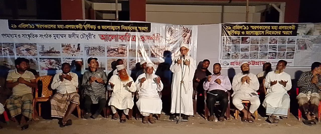 ঐদিন বিকাল ৫ টায় খানখানাবাদ বেড়িবাঁধ সংলগ্ন এলাকায় ২৯ এপ্রিল’৯১ স্মরণে আলোচনা সভা ও বিশেষ দোয়া মাহফিল বিশিষ্ট সমাজসেবক আব্দুল আজিজ চৌধুরীর সভাপতিত্বে প্রজন্ম চট্টগ্রামের প্রধান নির্বাহী মুহাম্মদ জসীম চৌধুরীর সঞ্চালনায় অনুষ্ঠিত হয়। এতে প্রধান অতিথির বক্তব্য রাখেন আন্তর্জাতিক খ্যাতিসম্পন্ন আলেমেদ্বীন ও ইসলামী ঐক্যজোট বাংলাদেশের চেয়ারম্যান আল্লামা মুফতি ইজহারুল ইসলাম চৌধুরী।