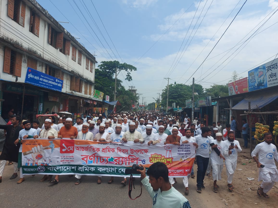এসো শ্রমিক দলে দলে ইসলামী শ্রমনীতি বাস্তবায়নের পতাকা তলে” এবং “মালিক শ্রমিক ভাই ভাই বৈষম্য দূর চাই”এই স্লোগানকে সামনে রেখে আন্তর্জাতিক শ্রমিক দিবস পালন করা হয়েছে।
