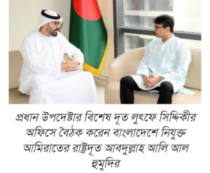 বাংলাদেশের নাগরিকদের জন্য সীমিত পরিসরে ভিজিট ভিসা চালু করেছে সংযুক্ত আরব আমিরাত। রোববার (৪ মে) প্রধান উপদেষ্টার বিশেষ দূত লুৎফে সিদ্দিকীর অফিসে এক বৈঠকে বাংলাদেশে