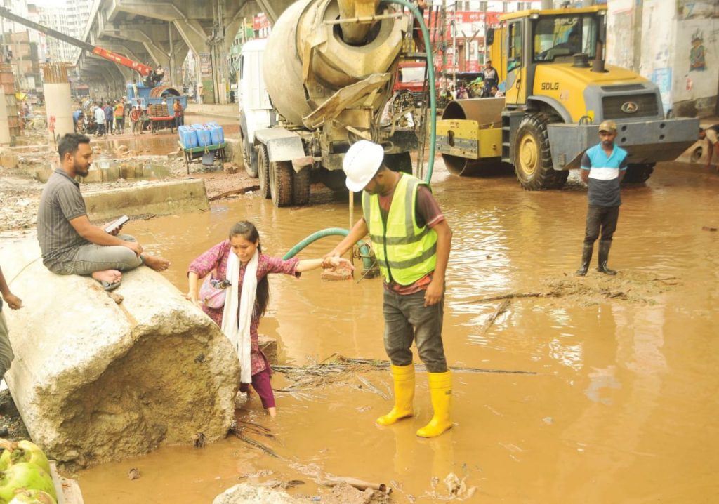 গতকাল সোমবার সরেজমিন দেখা যায়, নগরীর ইপিজেড থানাধীন ২ নং মাইলের মাথা এলাকা থেকে ব্যারিস্টার সুলতান আহমদ ডিগ্রি কলেজ পর্যন্ত বিমান বন্দর সড়কে এলিভেটেড এক্সপ্রেসওয়ের র‌্যাম্পের কাজ চলছে। টানা কয়েকদিনের ভারী বৃষ্টিতে ভারী যন্ত্র দিয়ে মাটি খোঁড়াখুঁড়ির কারণে প্রধান এই সড়কটির একপাশ কাদাজলে সয়লাব হয়ে গেছে। তাতে যানবাহন চালাতে ভোগান্তির মুখে পড়তে হচ্ছে। গর্তে যানবাহনের চাকা আটকে গাড়ি বিকল হচ্ছে, বাড়ছে যানজট। সেখানে গত তিনদিন ধরে রাতে দিনে যানজট স্থায়ী হয়ে গেছে। ঘন্টার পর ঘন্টা গাড়ি চলাচল বন্ধ থাকায় ইপিজেডের হাজার হাজার শ্রমিক কর্মচারীসহ এই এলাকার কয়েক লাখ মানুষকে চলাফেরায় সীমাহীন দুর্ভোগের সম্মুখীন হতে হয়েছে।