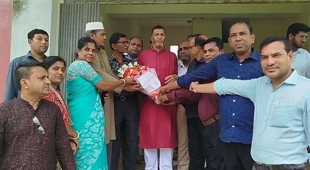কোকদন্ডী গুনাগরী উচ্চ বিদ্যালয়ের নবগঠিত সভাপতিকে ফুল দিয়ে বরণ