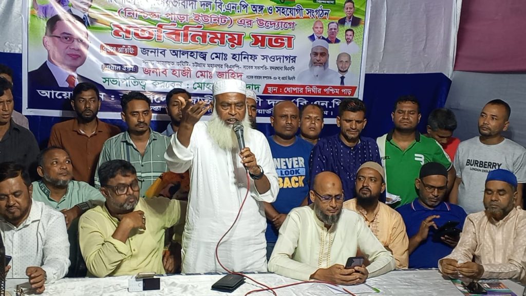 জনগণের সেবা করার জন্য মাঠে রাজনীতি করি, বিগত সরকারের আমলে দলের যেসব নেতা কর্মীরা নির্যাতিত নিপীড়িত হয়েছেন তাদেরকে নিয়ে রাজনীতি করব। বর্তমানে বিএনপির নাম ভাঙ্গিয়ে কিছু নেতা আওয়ামী লীগের সাথে আঁতাত করে ব্যবসা বাণিজ্যে,দোকানপাট দখল , চাঁদাবাজি সন্ত্রাসী কার্যকলাপে লিপ্ত রয়েছেন, তাদের উদ্দেশ্যে দলের ভারপ্রাপ্ত চেয়ারম্যান তারেক রহমানের স্পষ্ট ঘোষণা এসব অপকর্মের সাথে জড়িত ব্যক্তিদেরকে আইনের কাছে সোপর্দ করতে হবে। সুশীল সমাজ, যুব সমাজ, শিক্ষিত সমাজ, ছাত্র সমাজ ও এলাকার মুরুব্বিদেরকে নিয়ে ঐক্যবদ্ধভাবে এসব সন্ত্রাসীদেরকে প্রতিহত করতে হবে। ২৮ জুন শনিবার সন্ধ্যায় বন্দর নগরীর ৩৮ নম্বর ওয়ার্ড বাংলাদেশ জাতীয়তাবাদী দল বিএনপি অঙ্গ ও সহযোগী সংগঠন ধোপার দিঘীর পশ্চিম পাড় নিশ্চিন্তা পাড়া ইউনিট শাখার উদ্যোগে আয়োজিত আসন্ন জাতীয় সংসদ নির্বাচন ও বর্তমান রাজনৈতিক প্রেক্ষাপট শীর্ষক মত বিনিময় সভায় প্রধান অতিথির বক্তব্যে একথা বলেন, মহানগর বিএনপির আহ্বায়ক কমিটির সদস্য আলহাজ্ব হানিফ সওদাগর।