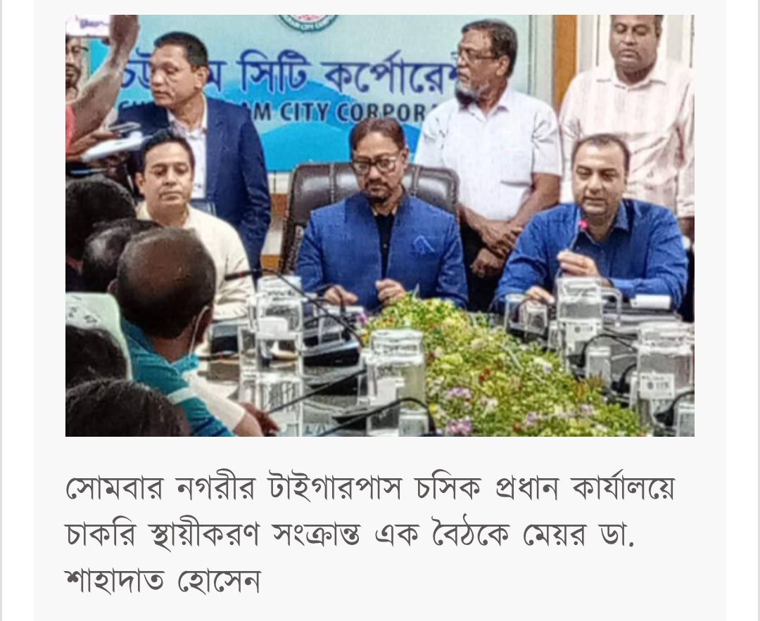 সোমবার (৩০ জুন) নগরের টাইগারপাস চসিক প্রধান কার্যালয়ে এ সংক্রান্ত এক বৈঠকে মেয়র ডা. শাহাদাত হোসেন বলেন, দীর্ঘদিন ধরে নিষ্ঠার সঙ্গে কাজ করেও অনেকেই স্থায়ীকরণের অপেক্ষায় ছিলেন। আমরা ন্যায়ভিত্তিক যাচাই-বাছাই শেষে উপযুক্তদের স্থায়ী করেছি। বাকিদেরও ধাপে ধাপে স্থায়ী করা হবে।