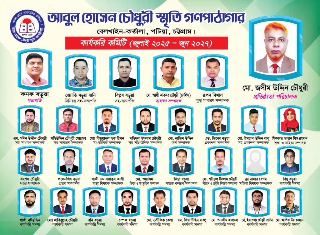 পটিয়া উপজেলা ঐতিহ্যবাহী সংগঠন আবুল হোসেন চৌধুরী স্মৃতি গণপাঠাগারের কার্যকরি কমিটি গঠনকল্পে এক সভা পাঠাগারের সভাপতি কাজল বড়ুয়ার সভাপতিত্বে অনুষ্ঠিত হয়। পাঠাগারের পরিচালক ও শিক্ষা অন্বেষা সম্পাদক মো. জসীম উদ্দিন চৌধুরীর সঞ্চালনায় অনুষ্ঠিত সভায় অতিথি হিসেবে উপস্থিত ছিলেন অবসরপ্রাপ্ত কৃষি কর্মকর্তা অনিল বড়ুয়া ও শিক্ষক মিলন কান্তি বড়ুয়া। সভায় নবগঠিত কার্যকরি কমিটির নিম্নরূপ: