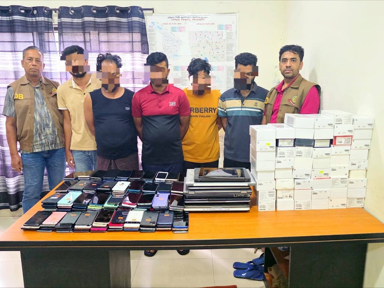 উক্ত সংবাদের ভিত্তিতে চোরচক্রের সদস্য ১। মোঃ তানভির হাসনাইন (৩২), পিতা- আবদুল হান্নানসাং- পশ্চিম বাকলিয়া (ডিসি রোড), ১৭নং ওয়ার্ড, ডাকঘর- চকবাজার, থানা- বাকলিয়া, জেলা- চট্টগ্রাম, ২। মোঃ সোহেল উদ্দিন (৩২), পিতা- মৃত আবু তাহের,সাং- বড় হাতিয়া, আমতলী, ডাকঘর- বড় হাতিয়া, থানা- লোহাগড়া,বর্তমানে- ১৫ নং রশিদ মঞ্জিল, হরিশদত্ত লেইন, ৩নং গলি, নন্দনকানন, থানা- কোতোয়ালী,৩। মোঃ রুবেল প্রকাশ চাকমা রুবেল (৩৬), পিতা- মৃত আব্দুল মালেক প্রকাশ বাদশা মিয়া, সাং- মুছাপুর মালেকের নতুন বাড়ী, থানা- কোম্পানীগঞ্জ, জেলা- নোয়াখালী, ৪। মোঃ মোহাম্মদ হোসাইন (২২), পিতা- মোঃ ফরিদুল আলম,সাং- উত্তর চরমবা (বানোয়ার পাড়া), ডাকঘর- লোহাগড়া, থানা- লোহাগড়া, জেলা- চট্টগ্রাম,৫। আবদুল্লাহ আল মামুন (২৭), পিতা- মোঃ কবির আহাম্মদ, থানা- সাতকানিয়া,বর্তমানে- মন্নান শপিং কমপ্লেক্স, রিয়াজউদ্দিন বাজার, থানা- কোতোয়ালী,জেলা- চট্টগ্রাম, কর্মস্থল- চট্টগ্রাম দের গ্রেফতার করেন।ধৃত আসামীরা চোরাই মোবাইল আছে মর্মে স্বীকার করে। অতঃপর আসামীদের স্বীকারোক্তি ও দেখানোমতে ০২নং আসামী সোহেলের ভাড়াকৃত কক্ষ তল্লাশী করে তাদের দেখানো মতে ঘরের মেঝতে থাকা ১। ৩৪২ টি বিভিন্ন মডেলের ব্যবহৃত মোবাইল সেট, যার আনুমানিক মুল্য-৩০,০০০০০/-, ২। ০৬টি পুরাতন ব্যবহৃত ল্যাপটপ এবং চোরাই মোবাইল ও ল্যাপটপ ক্রয়-বিক্রয়ের নগদ ২,০০,০০০/- (দুই লক্ষ টাকা) উদ্ধার করেন। তারা আরো জানান,চট্টগ্রামনগরীর বিভিন্ন এলাকা হতে চুরি ও ছিনতাইয়ের মোবাইল এবং মালামাল গুলো অধিক দামে দেশের বিভিন্ন জেলা সহ রোহিঙ্গা ক্যাম্প, মায়ারমার, নেপালে ও ভারতে পাঠিয়ে দেয় ।