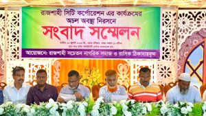 রাজশাহী সিটি কর্পোরেশনের কার্যক্রমের অচল অবস্থা নিরসনে সংবাদ সম্মেলন করেছে রাজশাহী সচেতন নাগরিক সমাজ ও রাসিক ঠিকাদারবৃন্দ।রবিবার সকাল সাড়ে দশটায় শাহ্ ডাইন কমিউনিটি সেন্টার কনফারেন্স
