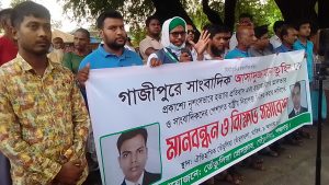 গাজীপুরের চৌরাস্তায় দৈনিক প্রতিদিনের কাগজ পত্রিকার স্টাফ রিপোটার সাংবাদিক আসাদুজ্জামান তুহিন কে প্রকাশ্যে হত্যার প্রতিবাদে ও হত্যা কারীদের বিচারের দাবীতে তেতুলিয়ায় সাংবাদিকদের মানববন্ধন ও প্রতিবাদ