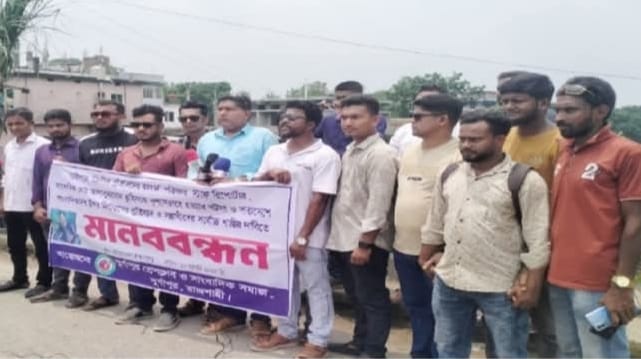 দুর্গাপুর ব্রিজে মানববন্ধন পালন কর্মসূচি পালন করেন  স্থানীয় সাংবাদিকরা।