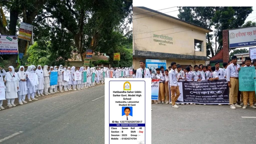 হাতীবান্ধায় শিক্ষার্থীর মৃত্যুর ঘটনায় বিচার দাবিতে মানববন্ধন