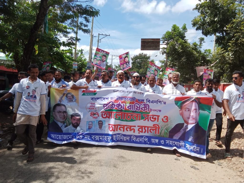ফেনী পরশুরাম উপজেলা বাংলাদেশ জাতীয়তাবাদী দল বিএনপির ৪৭তম প্রতিষ্ঠাবার্ষিকী উপলক্ষে উপজেলা ও পৌর বিএনপি যৌথভাবে স্টেশন রোড থেকে আজ বুধবার ১১ঘটিকা সময় বন্যাঢ্য শোভাযাত্রা বের করে শহরের প্রধান প্রধান সড়ক প্রদক্ষিণ করে।