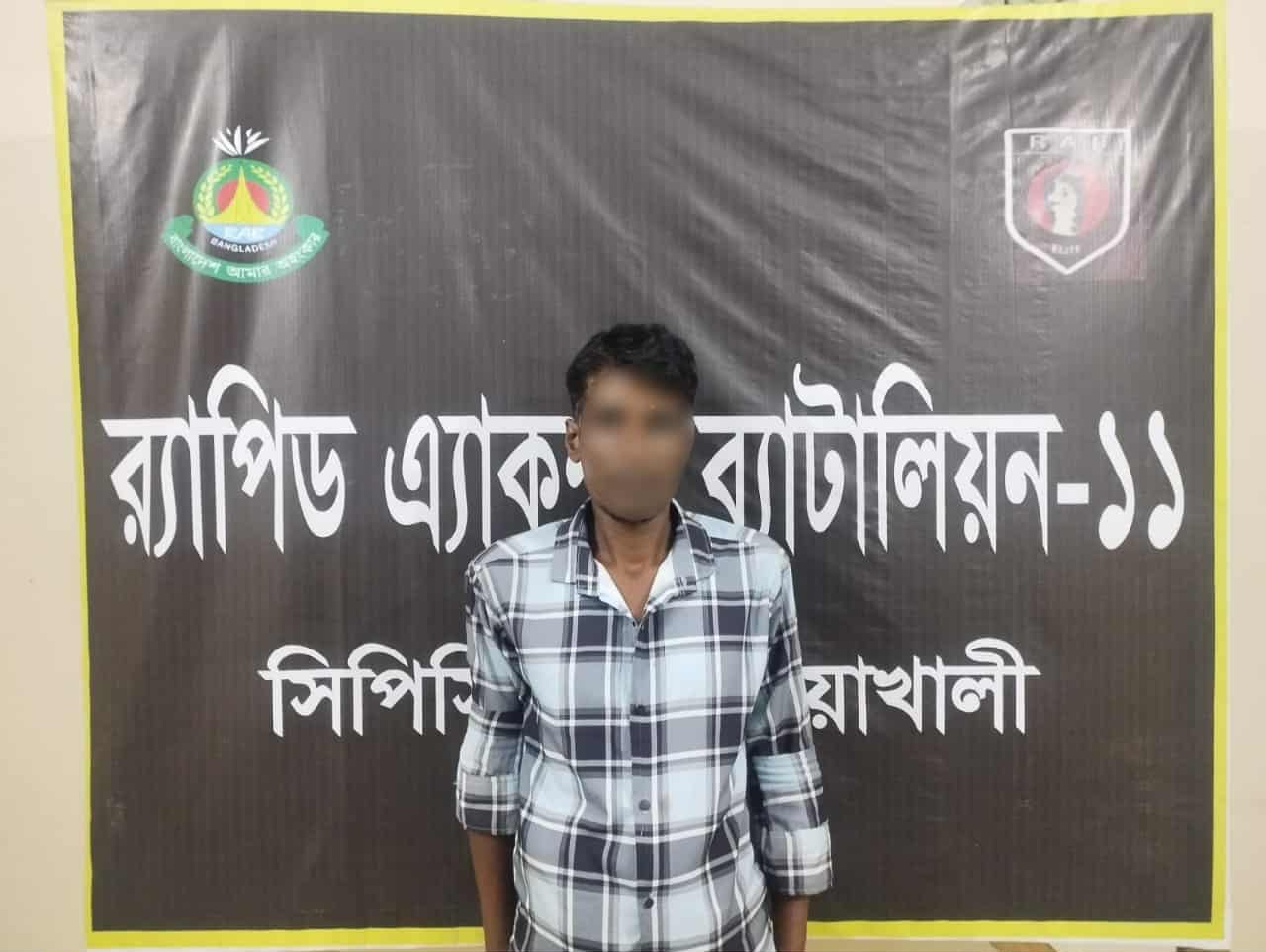 র্যাব-১১ কোম্পানি কমান্ডার (ভারপ্রাপ্ত) মিঠুন কুমার কুন্ডু’র বলেন, গোপন সংবাদের নারী ও শিশু নির্যাতন দমন আইন, ২০০০ আইনে মৃত্যুদন্ডপ্রাপ্ত পলাতক আসামী মোঃ রহিম(৪৪), গ্রেফতার করা হয়। পরবর্তী আইনানুগ ব্যবস্থা গ্রহণের জন্য নোয়াখালী জেলার সুধারাম থানায় হস্তান্তর করা হয়েছে।