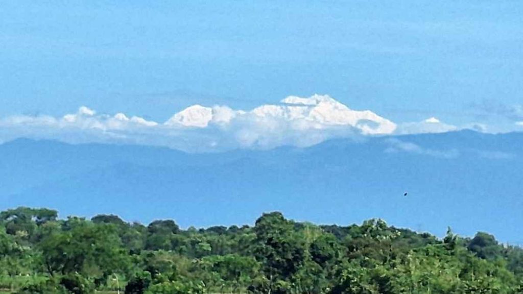 শুক্রবার (২৬ সেপ্টেম্বর) সকালে পরিষ্কার নীল সবুজে আকাশের নিচে বিশালাকার পর্বতটি হঠাৎ করেই যেন উঁকি দেয়। পঞ্চগড় জেলার বিভিন্ন প্রান্তের মানুষ কয়েক মিনিটের জন্য উপভোগ করেন এই অপার্থিব দৃশ্য।