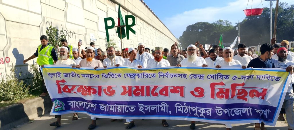 জামায়াতে ইসলামী কেন্দ্র ঘোষিত ৫ দফা দাবি আদায়ের লক্ষ্যে মিঠাপুকুরে বিক্ষোভ মিছিল ও সমাবেশ অনুষ্ঠিত হয়েছে।শুক্রবার (২৬ সেপ্টেম্বর) উপজেলা জামায়াতের উদ্যোগে বিক্ষোভ সমাবেশ ও মিছিল কর্মসূচি পালিত হয়।