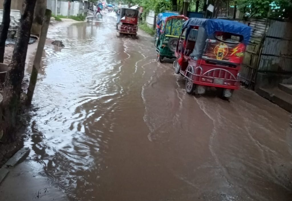 রাস্তার ইট উঠে যাওয়া ও ড্রেনের ব্যবস্থা না থাকায় চরম দুর্ভোগ পোহাতে হচ্ছে স্থানীয়দের।