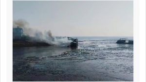 সীতাকুণ্ডে ড্র্র্র্রেজার ও বাল্কহেড পুড়িয়ে দিল গ্রামবাসী