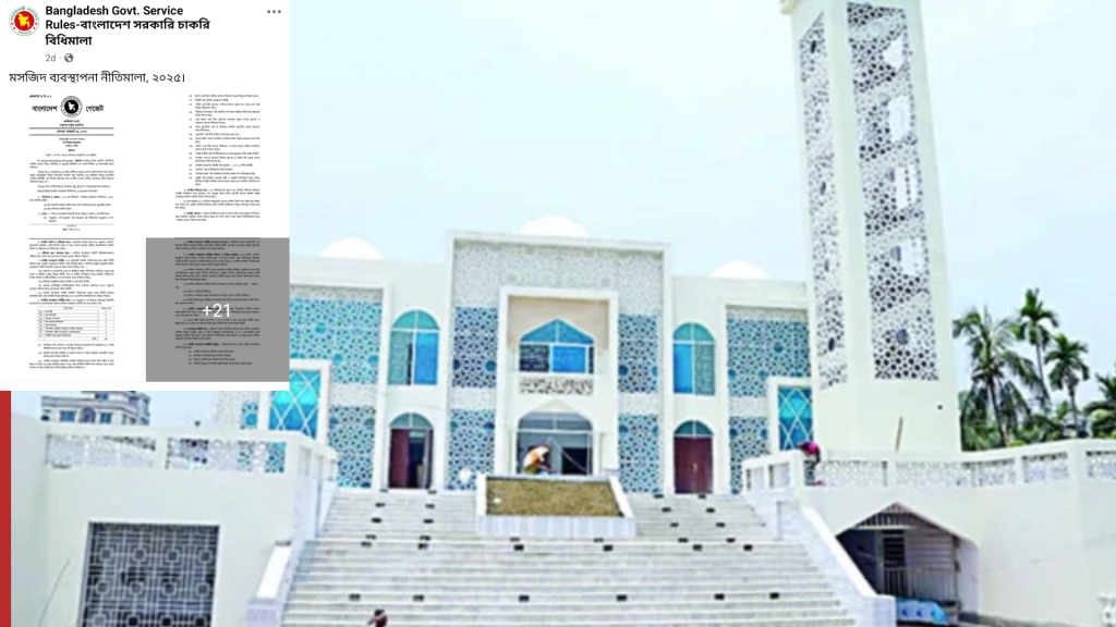 মসজিদ ব্যবস্থাপনা নীতিমালা ২০২৫-এর গেজেট প্রকাশিত