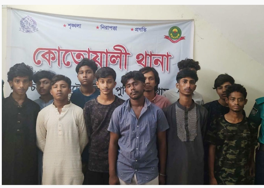 গ্রেপ্তারকৃতরা হলো- শামিম (২২), মো. আরমান হোসেন (১৯), মো. বাপ্পী (১৯), নাছির উদ্দিন রিয়াদ (১৯), মো. সাইম হোসেন সোহাগ (১৯), মো. হোসেন (২৩), মো. আল আমিন (১৯), মো. রিয়াদ (১৯), মো. তামজিদ (১৯), মো. অনিক আকরাম (১৯), নিরব গাঙ্গুলী (১৯)।